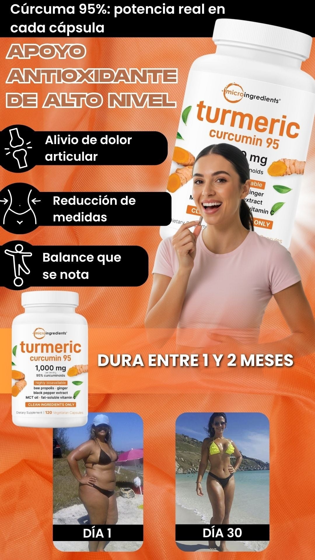 La combinación de Curcumina concentrada al 95% y Manganeso actúa en sinergia para reducir la inflamación, mejorar la digestión y proteger las células del envejecimiento, ofreciendo un equilibrio natural y duradero cada día.